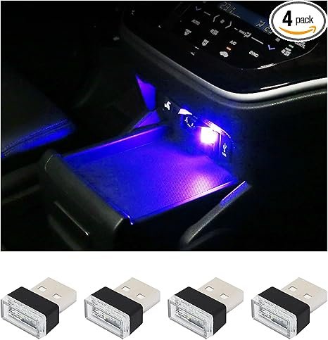 Augeny 4 PCS USB LED Car Interior Atmosphere Lamp