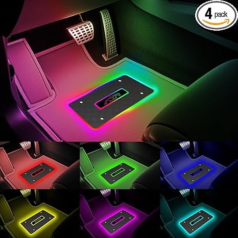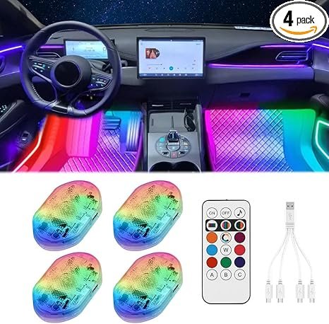 4Pcs Car LED Lights Interior Wireless, 7 Colors Interior Car