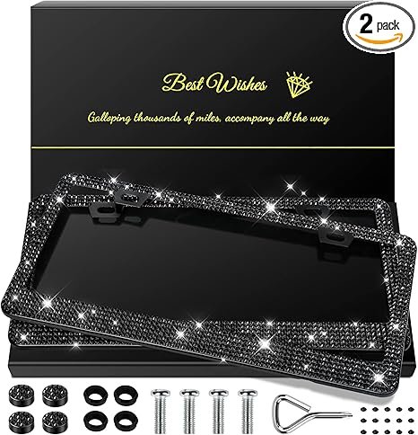2 Pack Bling License Plate Frames for Women, Sparkly Rhinestone