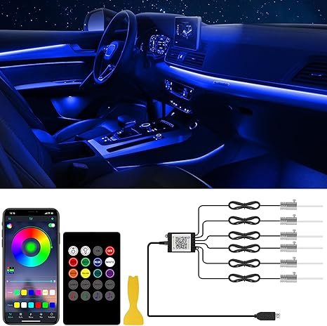 Car LED Interior Strip Lights 6 in 1 APP and Remote Control