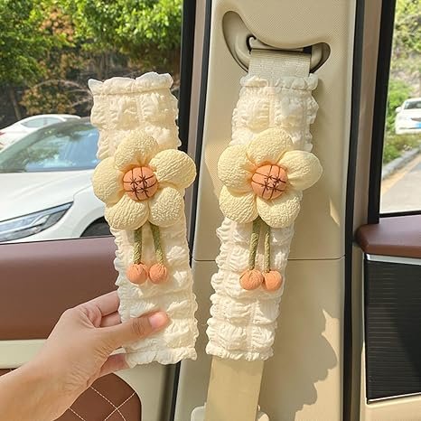 4 PCS Car Seat Belt Covers, Cute Flower Seat Belt Cover Pad
