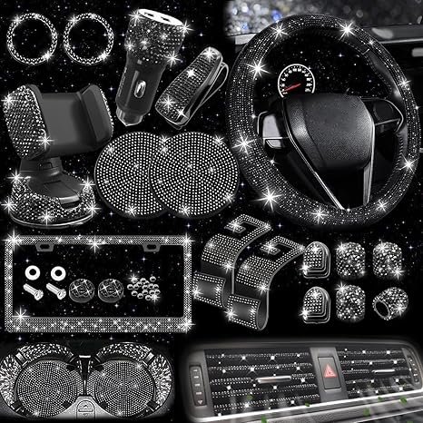 NBTEPEM 27 PCs Black Bling Car Accessories Set for Women
