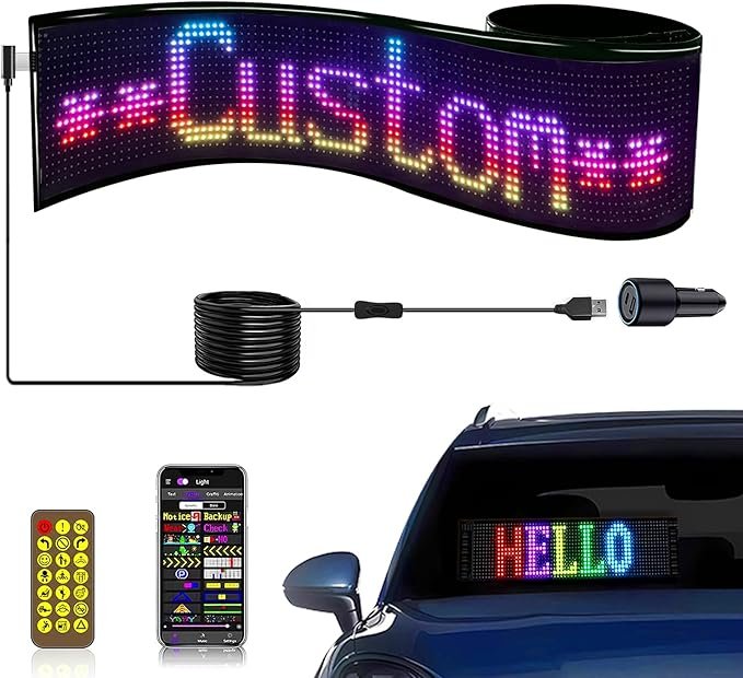 LED Sign for Car with Bluetooth APP Control, Custom Programmable