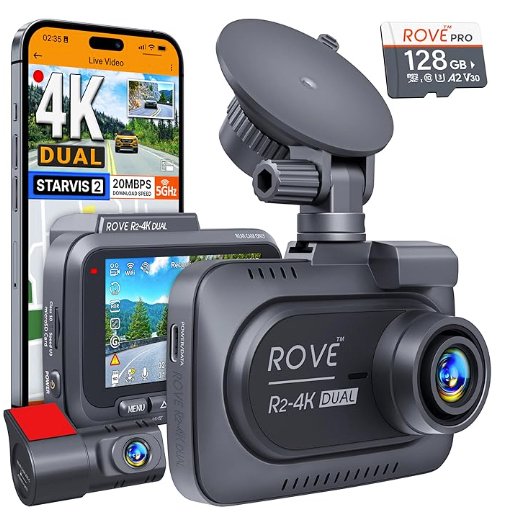 ROVE R2-4K DUAL Dash Cam Front and Rear, STARVIS 2 Sensor
