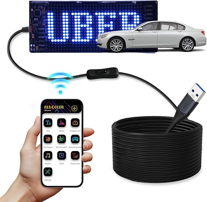Programmable Scrolling LED Car Sign, Flexible USB 5V Digital